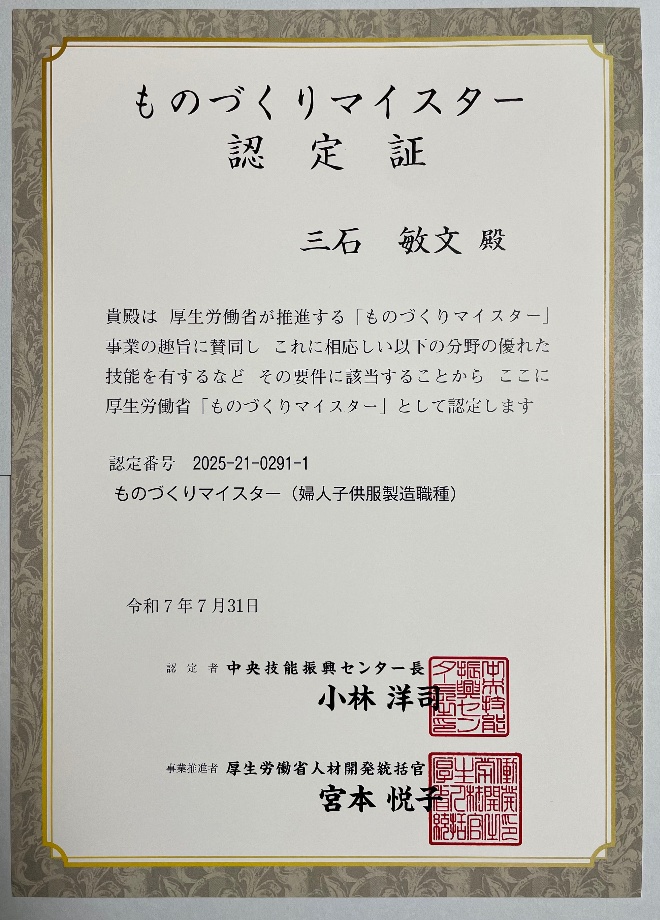 令和7年7月ものづくりマイスター認定